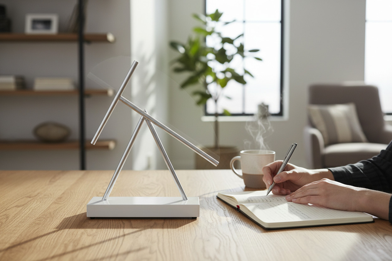 Die Kinetic Desk Sculpture ist mehr als Dekoration – sie ist ein Statement. Die endlose Bewegung der Swinging Sticks schafft Ruhe und Inspiration am Arbeitsplatz.